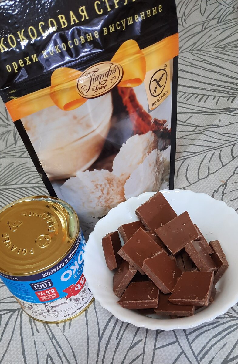 Что-то зачастила я с рецептами сладостей🤪 Но этот батончик мне очень понравился, я просто не могу не поделиться им с вами! Ингредиенты: Приступаем! Этап 1. Смешиваем кокосовую стружку со сгущенкой. Перемешивайте тчательно и аккуратно. Этап 2. Топим шоколад в микроволновой печи. Кусочки шоколада ставим в микроволновку на самую большую мощность примерно на 1 - 2 минуты. Необходимо стобы растаяло примерно 50- 60 % шоколада. Далее вымешиваем шоколад силиконовой лопаткой до полтого растопления. Этап 3. Формируем небольшие батончики и обмакиваем в растопленном шоколаде. Отправляем на заморозку в морозилку примерно на час. Рекомендую вам не делать моих ошибок и выкладывать батончики на силиконизированный пергамент. С его помощью конфеты не прилипнут. Отличный вариант к чаю! Приятного аппетита!