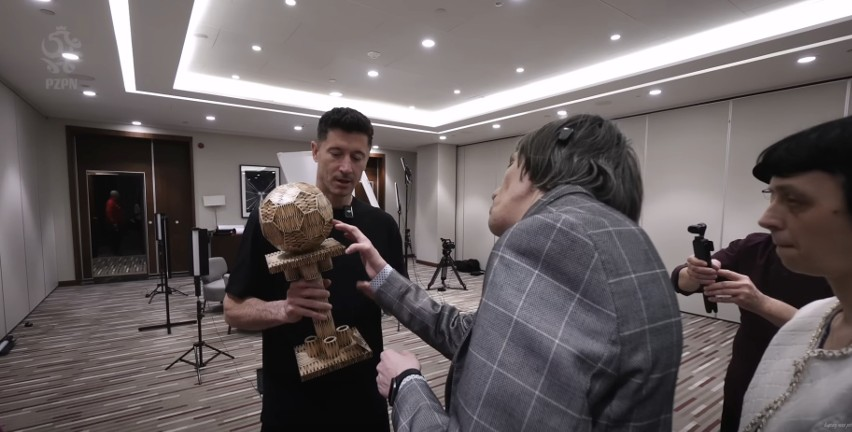 Не от France Football, а от фаната. Форвард «Барселоны» Роберт Левандовски получил «Золотой мяч», но за что? Этот подарок вручил один из самых преданных фанатов поляка. Этот фанат − инвалид, что делает эту историю еще более трогательной. Для создания «трофея» мужчине потребовалось 4718 спичек. На вопрос Левандовского, сколько времени ему понадобилось, чтобы сделать такой дизайн, автор без раздумий ответил, что 308 часов. «Выглядит супер. Я очень впечатлен качеством исполнения», − сказал восхищенный Роберт Левандовски. На что пожилой мужчина ответил, что занимается этим в качестве хобби на протяжении ровно 25 лет. Из приложенного влога мы также узнаем от него, что все эти проекты он делает не в специально подготовленной студии, а на обычной кухне. Кроме того, в последние годы он также вручал подарок самому Папе Римскому. Лева, в свою очередь, подарил ему свою подписанную футболку сборной Польши. Согласитесь, этот трофей ручной работы выглядит гораздо лучше, чем приз, который Левандовски
