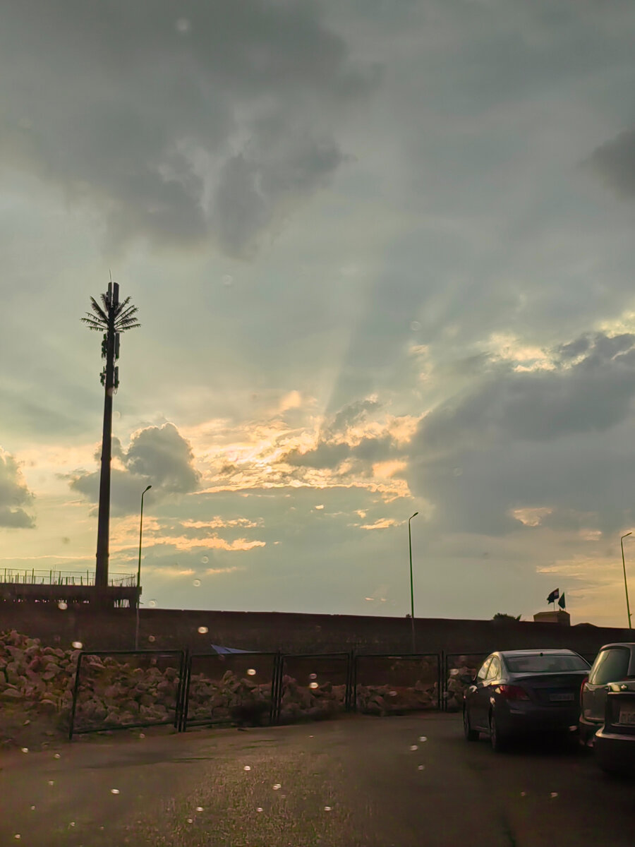 Вчера, в воскресенье у меня был ифтар с коллегами. Собирались к шести вечера. Вижу, что тема восточных женских нарядов нашла отклики, я очень рада. Показываю одну из своих абай для месяца Рамадан. Мне очень нравится этот цвет. И очень нравится орнамент. Надо отдать должное мужу, ему было очень плохо, но он сам предложил довезти меня до места проведения торжества. Вышли из подъезда и с удивлением увидели, что накрапывает дождь. В такое время дождей обычно не бывает . Потому и небо имело очень необычные для Каира краски. Меня подобная красота неба просто завораживает. В этом столько волшебства! Многие пишут, мол, фу, Каир такой грязный. Да, еиптяне. много мусорят, невоспитанные они. Но в Каире очень много красивых мест. Меня Каир очаровал очень давно, я до сих пор в него влюблена. Мне тут интересно все! Я каждый день удивляюсь, как будто вижу это первый раз. И вот перед глазами , в лучах закатного солнца, появился дворец, Я просто ахнула! Думала, что меня сложно удивить красивым отелем