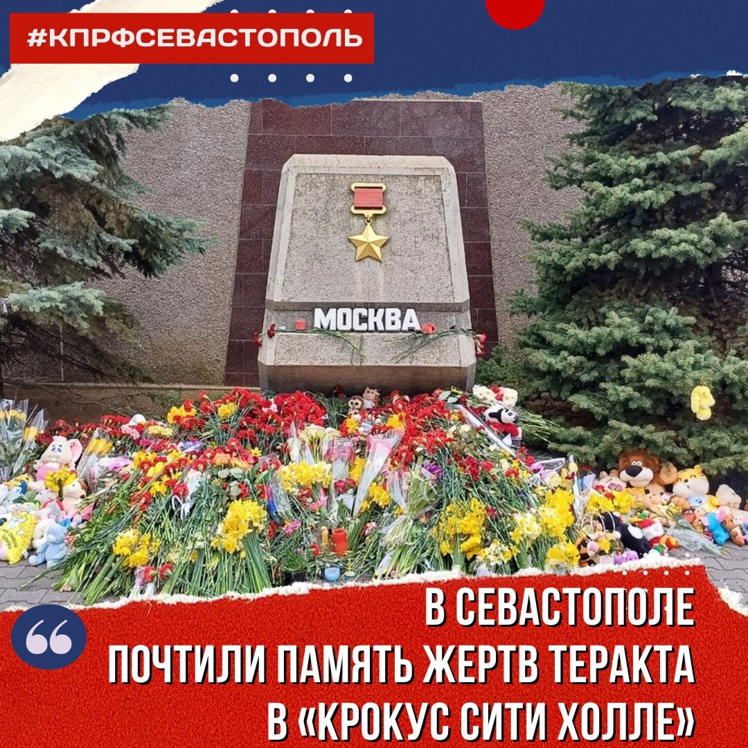 Севастопольские коммунисты также не остались в стороне. Выражая солидарность с опубликованным заявлением Центрального Комитета КПРФ, скорбя вместе со всей страной, коммунисты возложили цветы к стеле Москва на аллее Городов-Героев. Первый секретарь севастопольского ГК КПРФ, заместитель Председателя Законодательного Собрания г. Севастополя Василий Михайлович Пархоменко поблагодарил всех, кто пришел почить память жертв и выразить поддержку пострадавшим и их семьям. Лидер севастопольских коммунистов отметил, что сказано уже много траурных речей и слов осуждения этого бесчеловечного преступления. Севастополь с