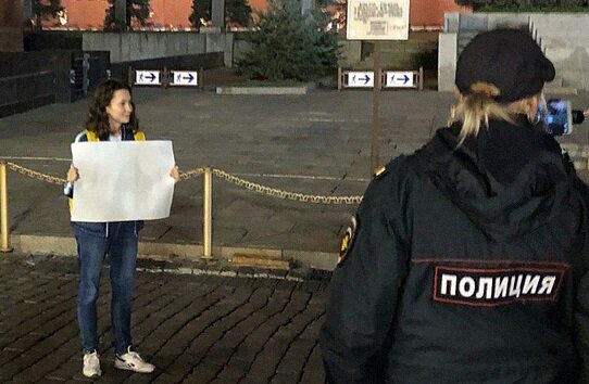 1. "В воскресенье вечером на Красной площади полицейские задержали девушку, которая стояла возле Мавзолея с чистым листом бумаги в руках. Ее отвезли в ОВД «Китай-город», но вскоре отпустили без составления протокола.Для протокола нужно административное правонарушение, но Ольга Мисик никаких правонарушений не совершала.