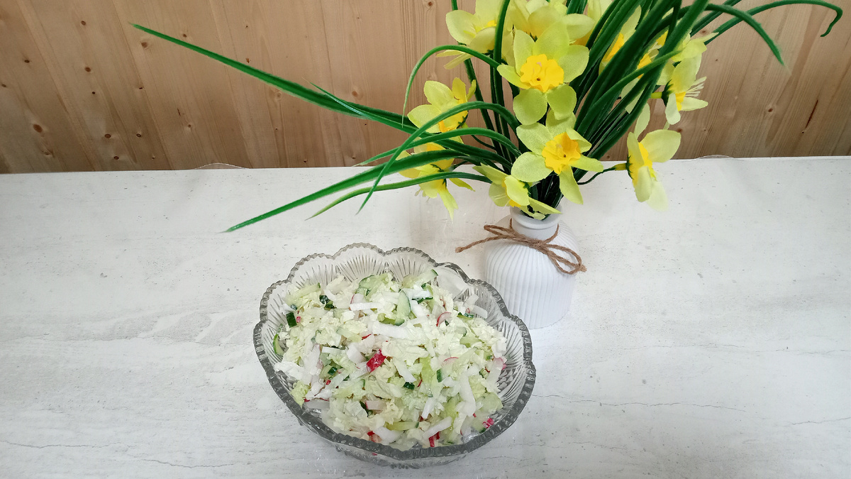 Салаты помогают разнообразить меню. Особенно хороши простые в приготовлении, из простых ингредиентов. Не думаю, что вам встретятся новые рецепты, но возможно вспомните те, которые давно не готовили. Пекинскую капусту, редис и огурцы нарезать соломкой. Посолить и заправить сметаной. Для заправки подойдет растительное масло. Самый простой салат, овощи могут быть любыми, но я люблю именно такое сочетание со сметаной. Колбасу нарезать тонкой соломкой. Сыр натереть на крупной терке. Добавить консервированную кукурузу и сухарики. Заправить майонезом. Не солить. Я покупаю сухарики соломкой. Вообще от качества продуктов зависит вкус салата. Выбирайте продукты, которые любите. Салат айсберг нарезать большими квадратами. Помидоры черри разрезать пополам. Добавить крупные кусочки куриного мяса. Можно пожарить в специях, запечь в духовке или просто отварить. Еще очень вкусно использовать курицу гриль. Сыр натереть на мелкой или крупной терке. Посолить и заправить майонезом. Перед подачей дополни