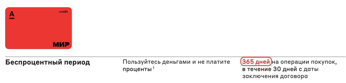 Рефинансирование своих кредиток на 100 дней. Если есть кредитка с долгом (или он скоро появится) в другом банке - задолженность можно перевести в "Альфа-Банк". На возврат денег будет до 100 дней без %. Важный нюанс: кредитку другого банка нужно будет закрыть в течение 14 недель.