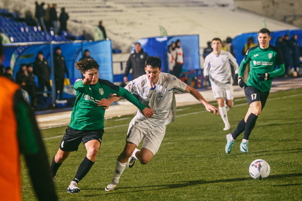 В дебюте встречи «Химик» по- хозяйски владел хоть и не подавляющим, но, тем не менее, преимуществом. Первый опасный момент у ворот гостей «зеленые» создали уже на 3-й минуте, когда Егурнев проверил бдительность Ризвана Ташаева и мяч лишь чудом пролетел рядом со штангой. Спустя пять минут «Химик» еще раз потревожил динамовскую оборону, когда заработал стандарт. Выполнять его принялся из радиуса штрафной Морозов, и на сей раз мяч пролетел в сантиметрах выше перекладины. Нельзя сказать, что динамовцы отсиживались только в обороне, остроту у ворот соперника они периодически пытались создать. Да и вратарь «Химика» Шулкин в первой половине встречи в ряде эпизодов не оставался без дела и выручил свою команду. Особенно опасным был дальний удар Владислава Фасхутдинова, пробившего в нижний левый угол – голкипер хозяйской команды в падении перевел мяч на угловой. Далее его примеру решил последовать Владислав Дрогунов, нанесший прицельный удар с левого фланга: в створ динамовец попал, но Шулкин оказался начеку.