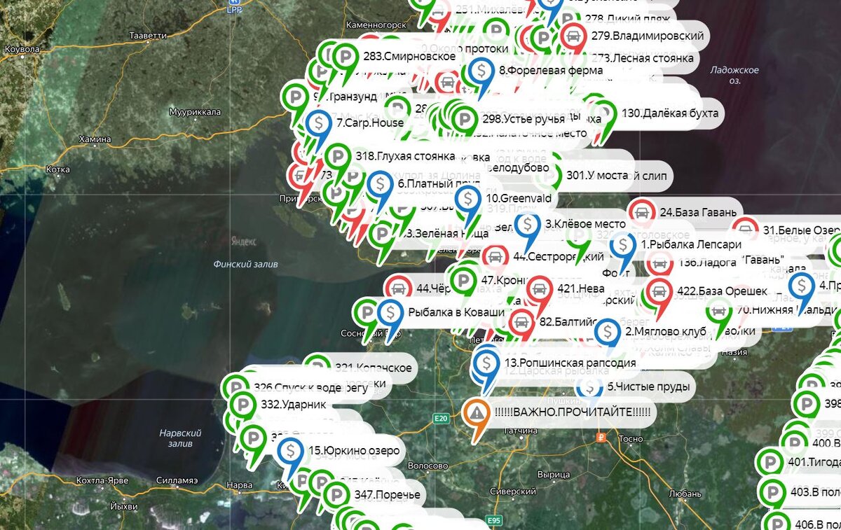 Обзор всех мест, где можно спустить лодку на Финском заливе, Ладоге, СПб, Неве, Вуоксе Волхове, Луге, Свири, озёрах севера и юга Ленинградской области. Всего в окрестностях Санкт-Петербурга собрано более четырёх сотен таких мест со слипами и парковками у воды. Зона покрытия от истока реки Волхов до побережья на Ладожском озере у устья Янисйоки. Места собраны коллективом рыбаков и водномоторников. Это колоссальное количество точек, которое не объехать одному даже за два года ежедневных поездок. Сразу отмечу, что не все они бесплатные, часть из них находятся на территории различных баз отдыха, лодочных станций и просто частных причалов. Другая часть со свободным доступом, среди таких есть и относительно труднодоступные из-за рельефа, где спуск возможен только на полном приводе или вовсе вручную. По каждой отметке есть описание, где указана вся полезная информация. Чтобы её открыть необходимо нажать на метку и выпадет текстовое окно. Для платных спусков там представлены контакты – телефон
