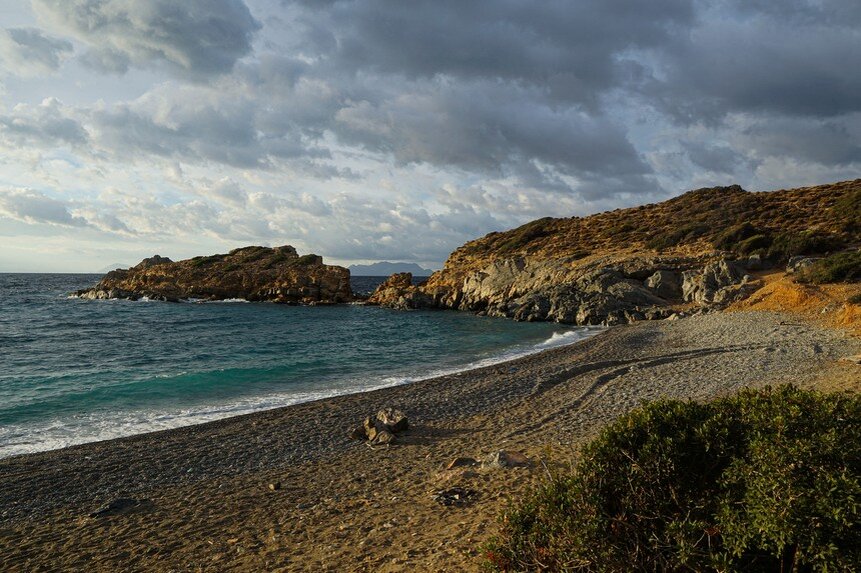 Кемпинг полупустой, стоит пара автодомов, похоже в них кто-то есть, но само место довольно грязное, на пляже тоже много мусора. По карте видим что до ближайшего поселения одна ходка, до дождя должны успеть без проблем, тучи пока раздувает ветром, а метки тропы ведут дальше к скалам.