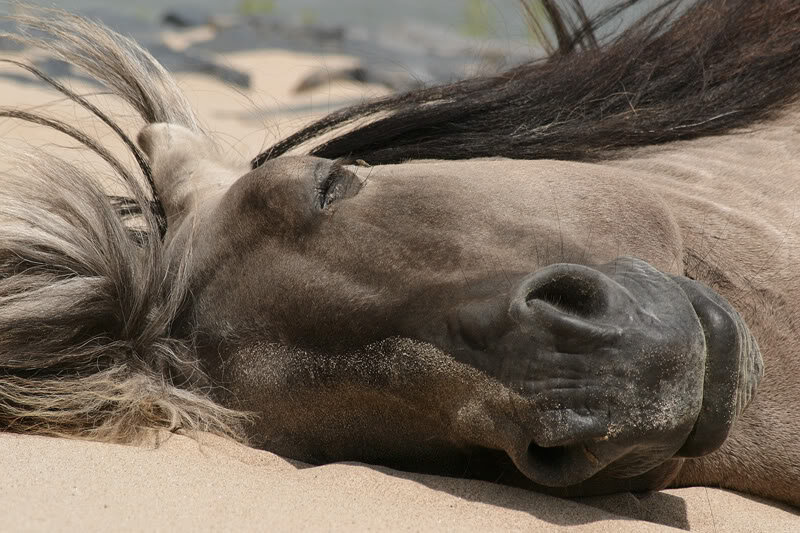 Сон лошади - это одна из самых загадочных тем, связанных с этими прекрасными животными. Многие люди считают, что лошади спят стоя, но на самом деле стоя они дремлют. Лошади спят лежа, как и другие животные. Однако, их сон имеет свои особенности. Дремать лошади могут от четырех до пятнадцати часов. Но такой сон очень чуток, не глубок. А при необходимости лошадь способна в считанные секунды проснуться и сорваться с места. Это срабатывает инстинкт самосохранения, так как в условиях дикой природы табун всё время подвергается опасности со стороны хищников, что заставляет лошадей всегда быть начеку, чтобы вовремя спастись бегством. Лошади стадные животные, им привычнее и спокойнее, когда вокруг их сородичи. Чем больше «ушей», тем меньше шансов, что опасность будет не замечена. Когда человек засыпает, его мышцы расслабляются. А после пробуждения нужно напрягать мышцы всего тела, чтобы встать и поддерживать равновесие. Но лошади устроены иначе. Их мышцы во сне не расслабляются и продолжаю