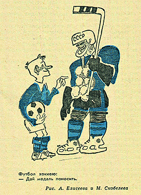 Евгений Рубин, чьи заметки о хоккее я читал в «Советском спорте» до 1978 года – до его иммиграции в США, напишет в книге воспоминаний «Пан или пропал», что Тарасов как раз канадцев боялся, и сколько мог оттягивал решение о матчах против команд НХЛ, предпочитая бить любителей (в Суперсерии 1972 года сборную СССР будет тренировать уже неустрашимый Бобров). Но тогда, в детстве, и Тарасов, и могучий русский богатырь Рагулин, и Локтев — Александров — Альметов жили в моем воображении так же ярко, так же былинно, как Илья Муромец или Микула Селянинович из детских книжек, расписанных палехскими художниками. Илья, Добрыня, Алеша Попович, изображенные на ковре у бабушки в деревне, мне, семилетнему, казались самой первой русской тройкой. Шлемы, латы, мечи, перекованные на клюшки – куда там тщедушным футболистам в шортиках?! Канадцев я при этом, хоть они и враги, очень уважал (не то, что Соловья-прохвоста-разбойника), и меня неразборчиво тревожило их заграничное слово «профессионалы».