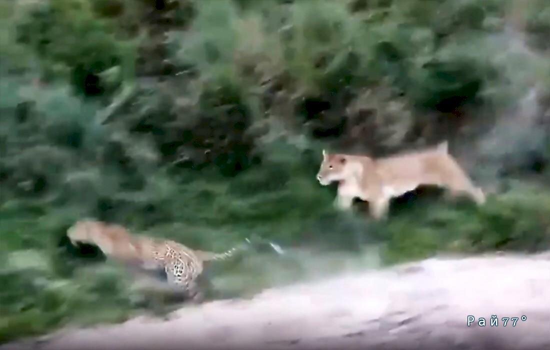 Хищная кошка, известная, как одноглазая красавица, напала на самца леопарда, названного Лорголгол, на глазах у туристов, совершавших платную экскурсию по территории заповедника Масаи-Мара. Затаившаяся в густых кустах львица, следившая за передвижениями леопарда, привлекла внимание путешественников, один из которых запечатлел, как коварная хищница попыталась разнообразить свой рацион питания. Но, судя по кадрам видеозаписи, самец учуял опасность и, ускользнув буквально из-под носа у хищной кошки, нашёл спасение на дереве. Источник