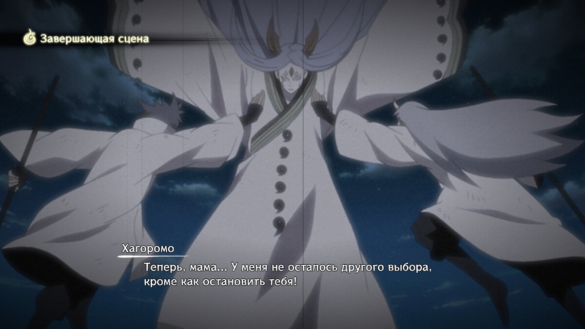 В играх серии Ultimate Ninja STORM существует механика, которая позволяет во время "добивания ультой" (когда вы используете Секретную технику персонажа на персонажа противника) в момент, когда у противника очень мало здоровья добить и тем самым просмотреть небольшой фрагмент из Аниме. Зачастую эти фрагменты, флешбеки взаимосвязаны с персонажами и являются секретными. В этой статье я вам расскажу какие Секретные Завершающие Сцены имеет новый дополнительный персонаж Хагоромо Ооцуцки. Когда-то давно мать Хагоромо и Хамруро Ооцуцуки - Кагуя Ооцуцуки потеряла рассудок и сыновья решили её запечатать... Хагоромо Ооцуцуки читает нотации своему сыну Индра Ооцуцуки... Хагоромо Ооцуцуки читает нотации своему сыну Ашура Ооцуцуки... Во время Четвёртой Великой Войны Ниндзя Хагоромо Ооцуцуки решил поделиться своей чакрой с Наруто Узумаки и помочь ему в борьбе с главным противником... Во время Четвёртой Великой Войны Ниндзя Хагоромо Ооцуцуки решил поделиться своей чакрой с Саске Учиха и помочь ему в