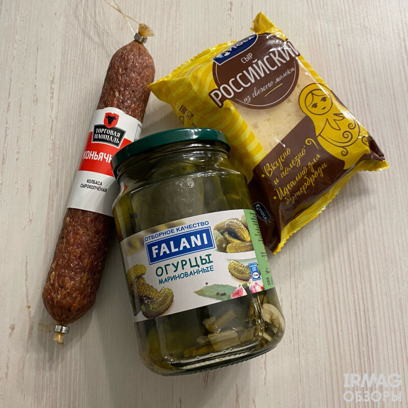 Обзор сырокопчёной коньячной Торговая площадь, российского сыра Viola и маринованных огурцов Falani В конце прошлого года я исполнила свою мечту, отправившись на зимовку в теплые края. За неполных 3 месяца мы с моим мужчиной посетили 4 города во Вьетнаме и 2 города в Тайланде, сменили кучу гостиниц и квартир, приобрели новых знакомых и друзей, отпраздновали Новый год под пальмами у моря. Пожалуй, это было лучшее путешествие в моей жизни! Приехали мы воодушевленные, заряженные энергией на год вперед и… очень истосковавшиеся по Родине. Каково же было удовольствие после 3 месяцев жары и духоты, вдохнуть глоток свежего воздуха. А еще мы очень соскучились по нашей русской еде. Поэтому на следующий же день я заказала на Ирмаге коньячную колбаску, российский сыр и баночку маринованных огурчиков. К слову, сыр-то мы, конечно, в Азии ели, но редко, поскольку там это удовольствие не из дешевых. Колбаса тоже стоит раза в 3-4 дороже, чем в России. Поэтому какое же было счастье поесть привычные прод