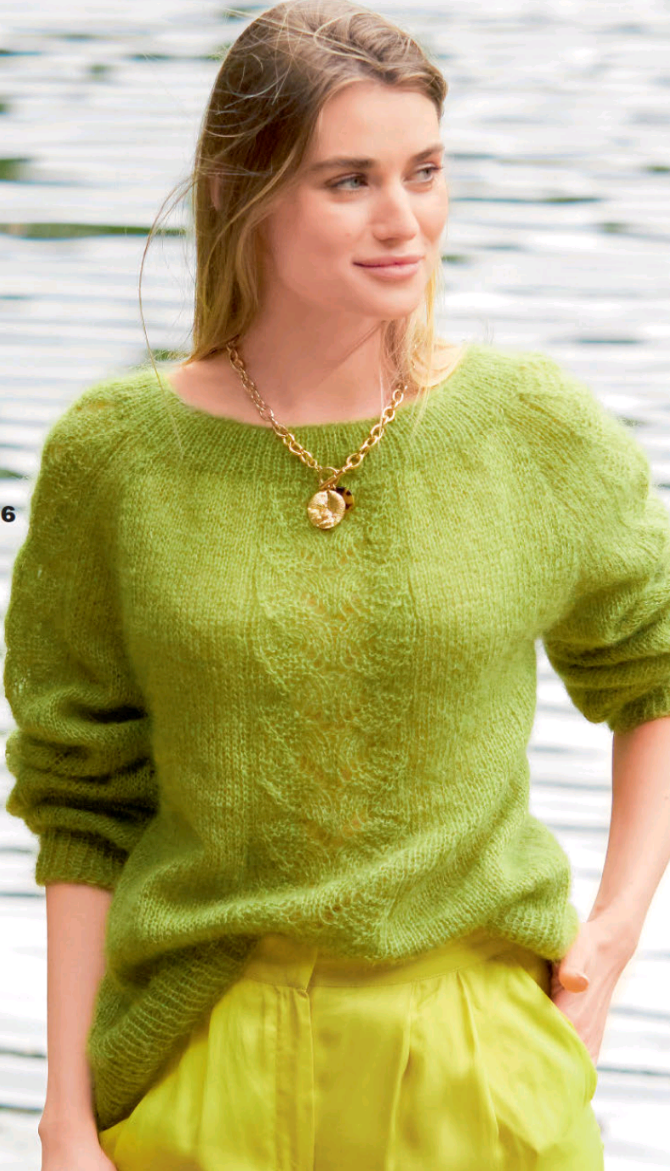 Предлагаю вашему вниманию два пуловера из журнала "Сабрина". Зелёный цвет, напоминает первые листочки , запах весны. Описание, схемы, выкройки.