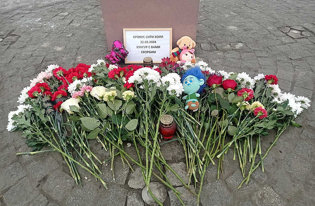 В выходные кунгуряки несли цветы к импровизированному мемориалу жертвам теракта в подмосковном «Крокус Сити Холле». Мемориал у «Кораблика» - памятника Первопроходцам организовала журналист Общественного телевидения России Юлия Долгова.