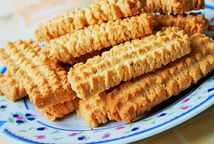 5. Прокрутите тесто через мясорубку с насадкой и выложите на противень, предварительно застеленный пергаментом. 6. Выпекайте в разогретой до 180 градусов духовке в течение 20 минут.