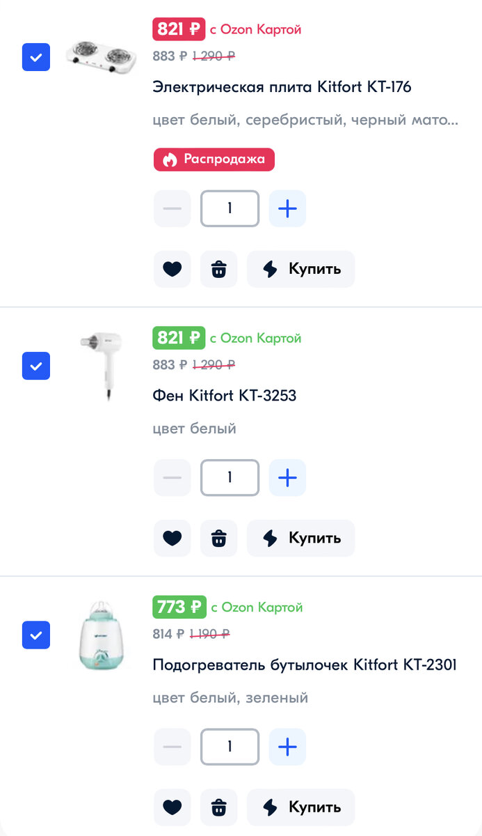 Итак, как получить 1+1=6 на бренд Kitfort Во-первых, осталось всего два дня до окончания акции 1+1=3 на Kitfort на озоне Ссылка Покупаем три предмета и переходим к следующему пункту 👇 Во-вторых, можно получить как минимум 1+1=4 или даже 1+1=6 путем написания отзыва о технике kitfort ❗️ В подарок за отзыв получаем кухонные весы 😉 (но возможно и изменение подарка) Отзыв должен состоять из 4-5 развернутых предложений и быть оставлен на сайте магазина, где совершена покупка Один товар = один отзыв Однако ❗️ Если Вы купили два или более товара одинакового артикула в одном магазине, отзыв можно оставить в магазине, где приобретали и на Я.Маркете Полные правила акции читаем ТУТ Пользуйтесь 😉