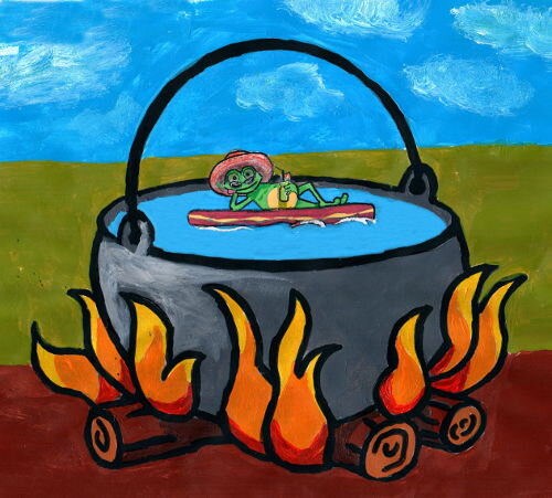 Никогда не пробовала бросать живую лягушку в кипяток, но говорят, что она ошпарится и немедленно выпрыгнет. Если же бросить бедное земноводное в холодную воду и медленно подогревать, оно не догадается выпрыгнуть (какое-то время получая удовольствие от тепленькой водички) - и сварится.