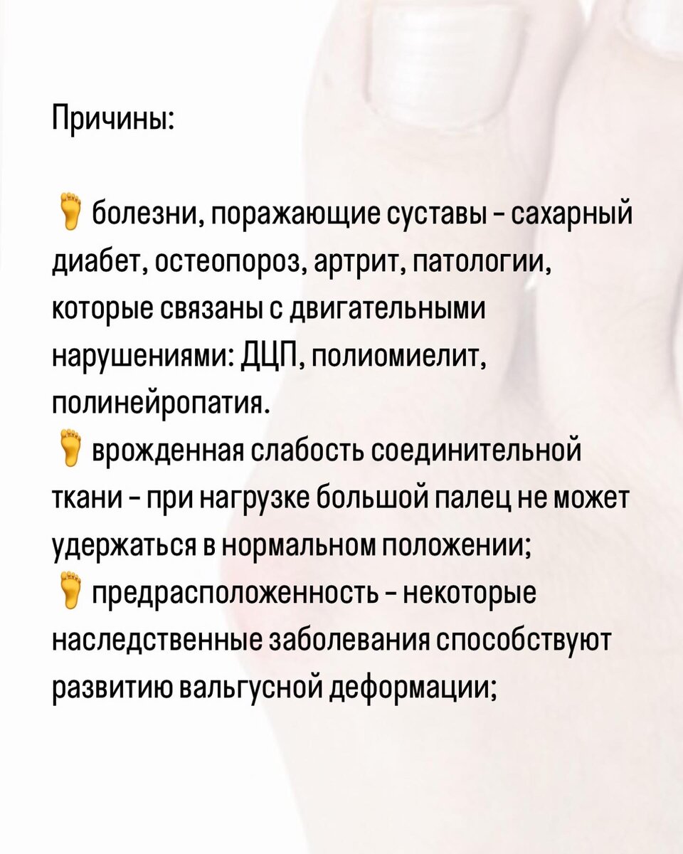 ✅обратиться к ортопеду ✅Перестать носить тесную обувь, слишком высокие каблуки или обувь без подъема пятки ✅выполнять адекватную физическую нагрузку - тренировки, которые включают в работу все мышцы, позволяют поддерживать необходимый тонус причины появления «косточки» 🤔Что может назначить врач: На ранних стадиях применяются консервативные методы лечения: - использование ортопедических изделий, к которым относятся супинаторы, корректоры, фиксаторы; - противовоспалительные и обезболивающие средства; - физиотерапевтические процедуры; - массаж и упражнения. Консервативные методы полностью помогают при исправлении вальгусной деформации стоп только в том случае, если отклонение между первой и второй плюсневой костью составляет не более 15 градусов. Что могу порекомендовать я, как тренер? Выполнять упражнения, которые запишу и сохраню в аккаунте. ❓Как вы справляетесь с болью/дискомфортом около косточки на большом пальце?