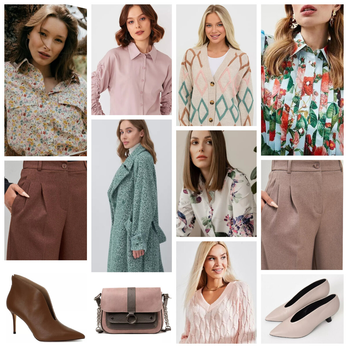 Чем я этого добилась? В основном цветом. По факту ничего открытого, ничего сильно прям подчеркивающего фигуру. Брюки, а не юбки. Но! Женственно! Почему? Принты, цветы! Ну и розовая тональность намекает на девочкость. Эх, красота! Срочно дайте денег и плюс три гардеробных. Второе требование важнее))) Что хочу отметить, как-то это после того как я добавила голубые цветочки стало нестись в сторону DG. А началось все с пальто. Я тут продала на авито своё красное пальто Бентон, что-то красный у меня не носится. Больше тянет на зелёный, голубой и бежевый. Долго рассматривала разные пальто, цепляют меланжевые варианты. Но это может сейчас. В итоге решила просто побаловаться с цветом. Нашла несколько интересных пересечений в вещах. Например кардиган с декором, объединяющим все цвета в капсуле. Нашла три цветочные блузки которые чудо как хороши. И остальное залила актуальной базой. Опять получился актуальный вариант ранняя и поздняя весна. Когда можно с пальто, а потом уже и просто ка