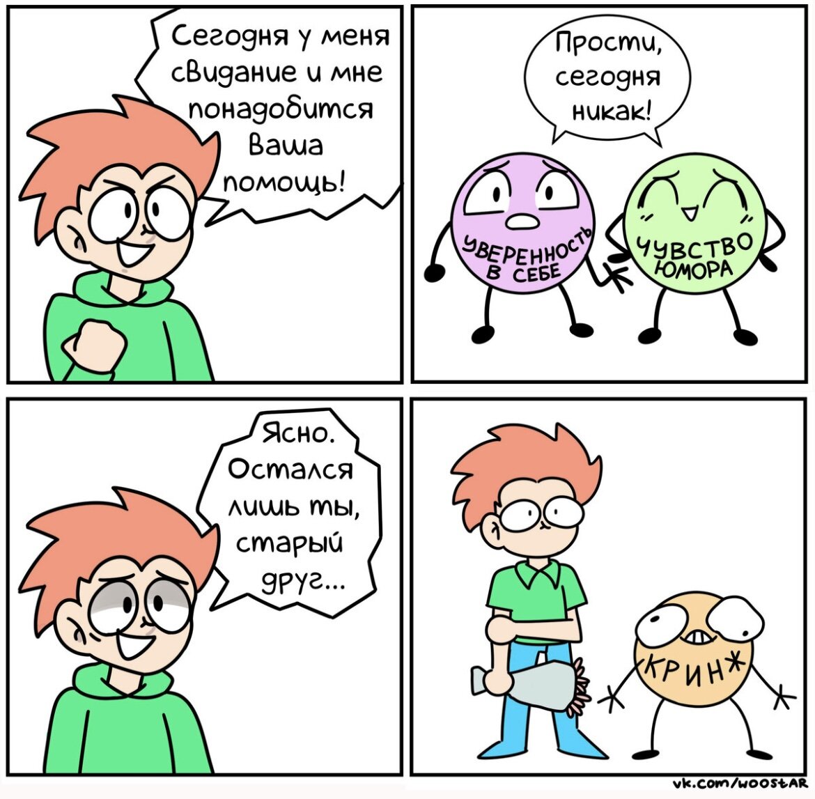 Весна, как известно, пора любви и романтики. День становится длиннее, юбки становятся короче, штаны шире, играет гормон, играет гармонь, поднимается столбик термометра, настроение и кое-что ещё. Поэтому я возвращаюсь к одной из моих любимых тем для комиксов – свиданиям. Тема взаимоотношений всегда была очень живой и волнующей, следовательно и комиксов об этом не мало. Я уже делал подборку о первых свиданиях в прошлом году (оставлю ссылку в конце статьи). Думаю продолжить эту традицию и в следующем, материала предостаточно. Ну а теперь, собственно – комиксы. Свидание – событие всегда волнительное, конечно, если вы не заядлый бродяга любви Казанова. И всем хочется показать себя с лучшей стороны, будь уверенным в себе и остроумным. Но что получается на деле? Расскажет зарисовка от Woostar Один из самых стрессовых этапов свидания – это момент, когда просят рассказать о себе. Автор Mart Virkus. Герой зарисовки от Safely Endangered всё-таки смог нарыть в голове пару фактов о себе. Отличный