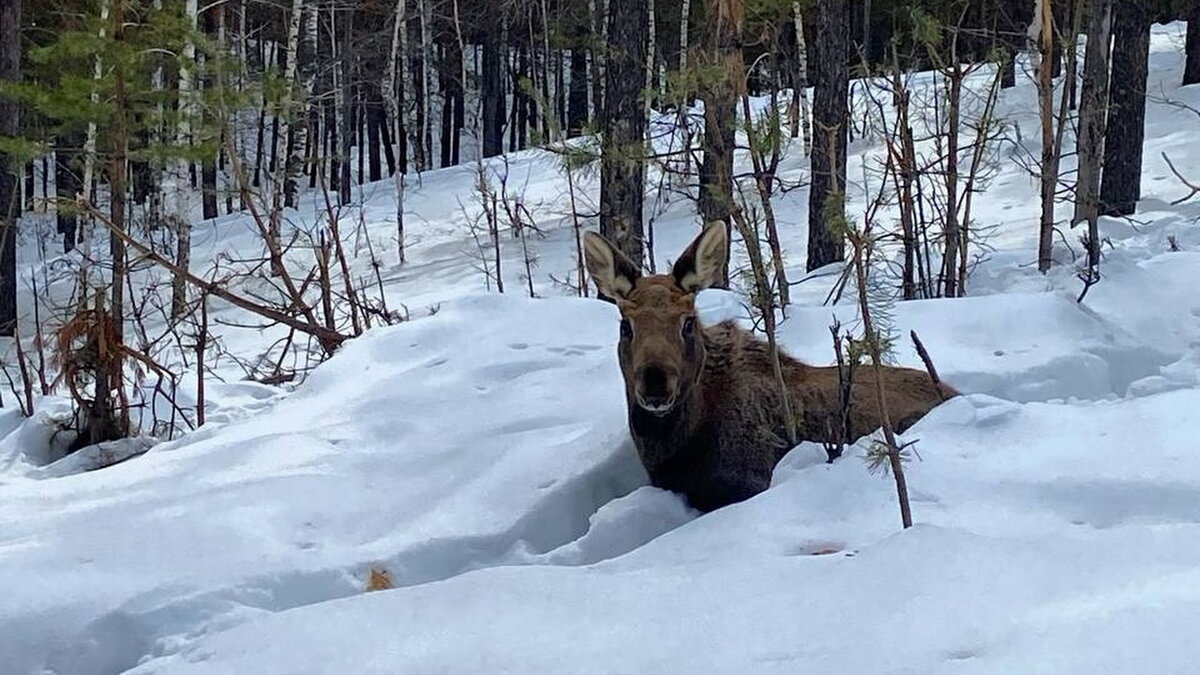 В фотоловушку «Бузулукского бора» попал бегающий по сугробам лось