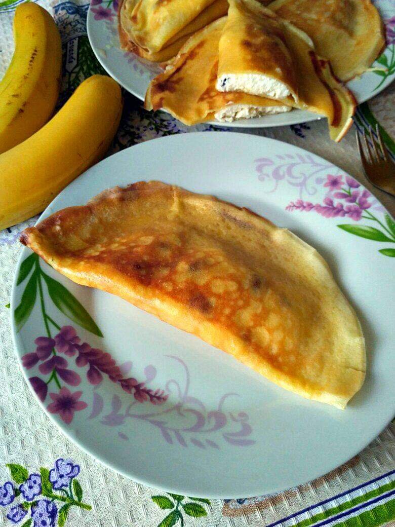 Для блинов - 4 яйца, щепотка соли, 2 ст ложки сахара - взбить венчиком. Добавить пол литра молока, взбить. Постепенно вводить пшеничную муку, работая венчиком, до получения консистенции теста, как жидкий кефир. Добавить щепотку соды и 2 ст ложки растительного масла. Дать тесту постоять 15 минут. Приготовить начинку - домашний творог, сгущенное молоко, сушеная клюква, по вкусу, в произвольных пропорциях. Разогреть блинную сковороду. Выливать порцию теста, для получения тонкого блина. На край блина выложить начинку и завернуть блин, на манер чебурека. Обжарить с двух сторон. При подаче, готовый блин обильно смазать растопленным сливочным маслом.