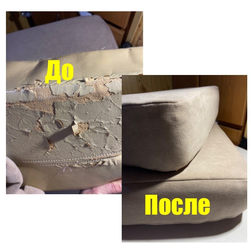 Ко мне обратилась моя подруга, чтобы я отреставрировала ее любимое рабочее кресло. Кресло часто используется для работы. Материал износился (кожзам) и кресло довольно старое. А значит не известно в каком состоянии поролон, которым обшиты из кожзама подушки. Вот в таком состоянии были подушки Дабы облегчить мои трудозатраты, приняли решение старую обивку не снимать, а обтянуть новой тканью. Подушки крепятся к креслу строительным степлером (скобами). Поэтому, я решила просто сшить чехлы, которые после крепления подушек к креслу, можно легко снять и постирать. Ткань подруга покупала на WB, искусственный мебельный велюр, плотность 400гр. По самим подушкам: ✅размеры двух подушек 45х47см и одна подушка 23х47см. ✅Высота у всех 9 см Также, она отдала мне отрез штапеля для кулисок, куда я вставила резинку (об это позже). Итак, я выкроила 2 больших детали с припусками 1 см и борт с припуском 1 и 1,5 см по низу. К этому припуску притачивала кулиску. Больший припуск, чтобы ткань немного оги