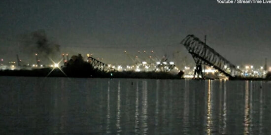 В одну из центральных опор врезалось грузовое судно. Около 1:30 ночи по восточному времени в мост Фрэнсиса Скотта Ки в Балтиморе, штат Мэриленд, врезался грузовой корабль, после чего 3-километровый стальной мост упал в реку Патапско. Пожарная служба Балтимора сообщила, что около 10 транспортных средств числятся пропавшими без вести, из них 3-4 гражданских. В момент катастрофы на мосту было движение, сейчас движение перекрыто. Береговая охрана и транспортное управление штата Мэриленд подтвердили факт крушения, но не предоставили никаких подробностей. Сейчас на месте находится большое количество экстренных. Как показано на видео с камер наблюдения, грузовое судно врезалось в опору, которая удерживает центральную часть моста, после чего весь мост сложился, как карточный домик. Ранее Peterburg2 писал, что оеоло Кронштадта сел на мель контейнеровоз под флагом Либерии. Читайте на Peterburg2