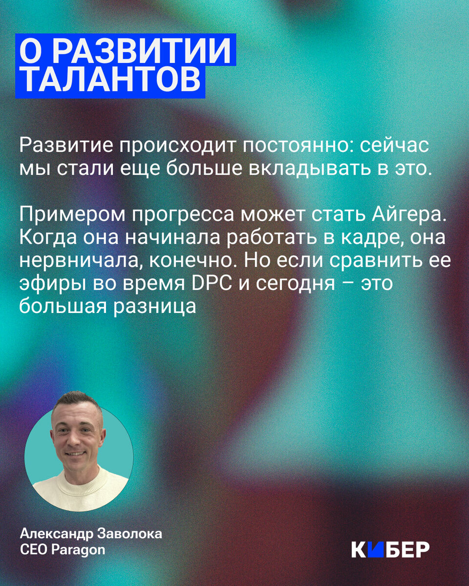 – Да. Я думаю, что примером прогресса может стать Айгера. Когда она начинала работать в кадре, она нервничала, конечно. Но если просто сравнить ее эфиры во время DPC и сегодня – это большая разница. Мы стали отправлять съемочные группы на турниры, и там она тоже демонстрирует прогресс. Процесс идет, как я уже говорил, не все за один день.
