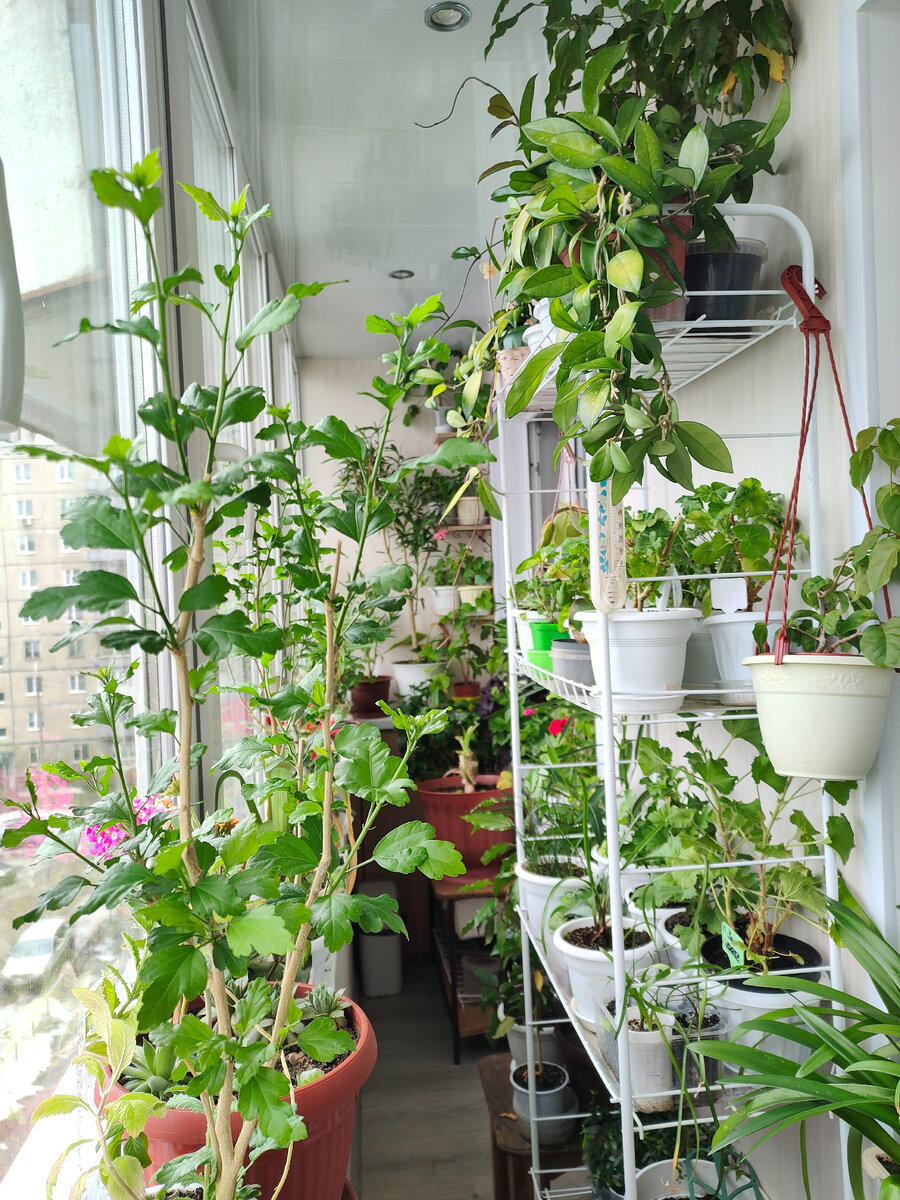Подходит к завершению первый месяц весны. Стали теплее дни, а главное - ночи. Растения, зимовавшие на комнатных подоконниках и стеллажах, потихоньку перемещаются на южную лоджию. Температура здесь сейчас около 15-18°C днем и 20-35°C днем, в зависимости от наличия солнца. Лоджия становится похожа на сад.
