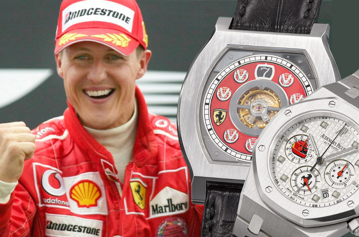 Друзья! 13 мая в рамках аукциона Christie’s в Женеве на торги будут выставлены часы Михаэля Шумахера. Речь идет о двух моделях часов, подаренных Шумахеру бывшим спортивным директором команды Ferrari Жаном Тодтом. Первая модель, Audemars Piguet Royal Oak, Ref. 25960BC стала рождественским подарком знаменитому гонщику в 2003 году. Часы представлены в корпусе из белого золота и оснащены белым циферблатом с типичными для моделей того периода квадратными метками. Изюминка часов – оформление счетчиков хронографа, выдающее связь с Михаэлем Шумахером. В 12-часовой счетчик у отметки «9 часов» вписан шлем гонщика, в секундный счетчик у 6-часовой отметки – логотип Ferrari, а в 30-миутный счетчике на позиции «3 часа» можно увидеть кольцо с 6 звездами. Они символизируют 6 чемпионатов мира, выигранных Шумахером до 2003 года. На задней крышке модели выгравированы годы каждой из 6 побед гонщика и рождественское поздравление Жана Тодта. Эстимейт: CHF 150,000 – 250,000 Вторая модель представляет собой у