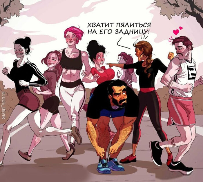 Здравствуй, дорогой читатель! Смешные и милые иллюстрации из-под кисти художника Иегуды Ади Девира – прямое попадание в отношения любой семейной пары. Его картины гласят о том, как в созданной семье все прекрасно – и о горе вместе, и о радости вместе, и посидеть в маковом поле на солнышке, тоже вместе. Иегуда в своих работах рассказывает зрителю о безумной и романтичной жизни самого художника и его очаровательной жены. Сюжеты наполнены бытовыми вещами, которые пара своим присутствием – украшает. Постоянное противостояние двух сторон одной прелестной семьи – знакомо каждому. Для девушек свойственно закатывать скандал о разбросанных носках по дому, а мужчины смело закатывают глаза на все претензии, указывая на постоянные волосы на полу, в ванной или еде. Иегуда пишет картины о своей жизни, точнее, лишь о тех нелепых, казусных и ироничных ситуациях, с которыми вместе с женой они сталкиваются изо дня в день. Иллюстрации рассказывают о том, как с позитивом относится ко всем ситуациям, ссора
