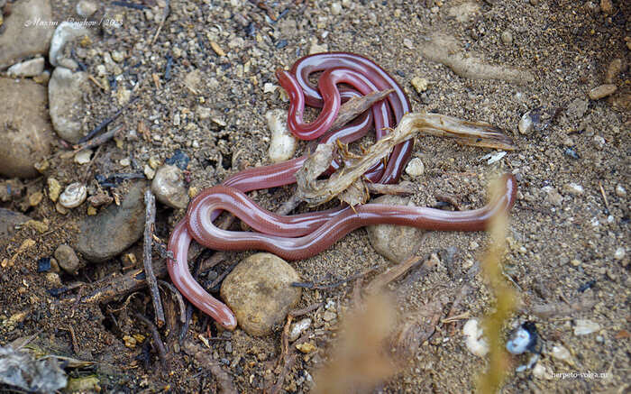 Еще один вид змей, встреченный мною во время поездки в Республику Дагестан, в мае 2023 г. Данная змея, хотя змеей ее сложно назвать, скорее это большой червяк, в России встречается только на территории Дагестана. Она же является самым маленьким представителем змей в нашей стране (длина до 38 см вместе с хвостом). Змейка довольно шустрая и юркая, все мои попытки сфоткать ее нормально не увенчались успехом - она постоянно делала попытки свалить. Примерно через полчаса мучений пришлось смириться и фоткать ее в руке - все таки это лучше чем десяток смазанных фотографий. Ну, зато будет повод еще раз приехать в Дагестан, чтобы нормально ее сфотографировать. Размер особи не мерял, так так такой задачи не было изначально. Но, по словам местных - особь была крупненькой, обычно мельче встречаются. Если это условный "червяк", то где собственно, у него начало и где конец? Так как с первого раза это совершенно не понятно. Оказывается голова отличается от хвоста, тем, что на ней находятся глаза, кот