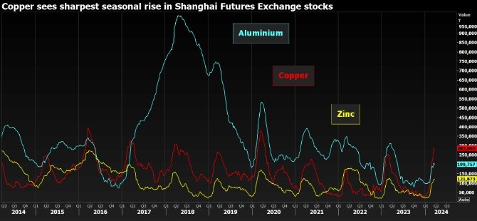 Медь продемонстрировала сильнейший сезонный рост запасов в Шанхае