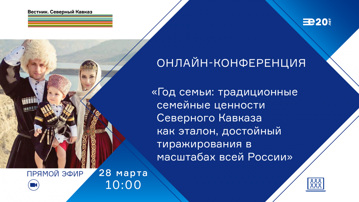 28 марта в 10.00 (мск) на площадке федерального информационно-аналитического журнала «Вестник. Северный Кавказ», издаваемого международным холдингом «ЕвроМедиа», состоится онлайн-конференция на тему «Год семьи: традиционные семейные ценности Северного Кавказа как эталон, достойный тиражирования в масштабах всей России» (на платформе Zoom). Актуальность темы: Указом президента России Владимира Путина 2024 год объявлен Годом семьи. Его ключевые задачи: создание условий для рождения первых детей в молодых семьях, укрепление репродуктивного здоровья, поддержка многодетных и многопоколенных семей, формирование здоровой моды на многодетную семью. «Наша общая и главная задача — возродить уважительное отношение к большой семье, способствовать укреплению семейных ценностей», — заявила председатель Оргкомитета по проведению Года семьи, заместитель председателя Правительства РФ Татьяна Голикова. Цель нашей онлайн-конференции — рассмотреть, как задачи Года семьи, сформулированные на федеральном ур