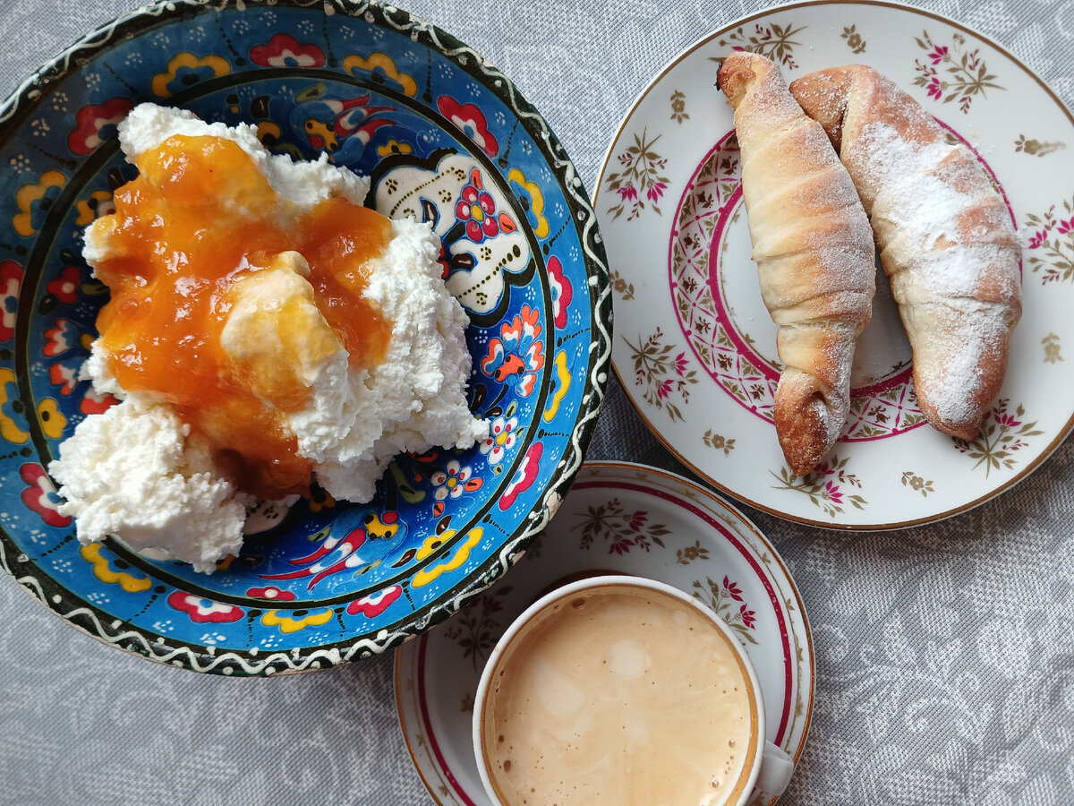О моих запасах продуктов и бюджете на питание в марте можно почитать ЗДЕСЬ Покупка продуктов №1 -Вкусвилл, Дикси, Мегамаркет, молочное хозяйство Покупка продуктов №2 - Мегамаркет, Вкусвилл, Верный, Дикси, КБ, молочное хозяйство Покупка продуктов №3 -Метро, Дикси, Озон, Я-Маркет, молочная ферма Покупка продуктов №4 - Вкусвилл, Дикси Каталог рецептов На завтрак сегодня творог с персиковым джемом. Это 5%-й творог из Вкусвилла. Еще кофе и круассаны доедаю (да, еще остались, т.к. сначала все усиленно ели пирожные😀) На обед сварила сырно-овощной суп -пюре. Кабачки из морозилки взяла, еще на разочек осталось как раз. И плавленый сырок Дружба. С плавленым сыром всегда прекрасный суп-пюре получается. Плюс сделала салат из кальмаров: банка консервированных кальмаров, свежий огурец и вареные яйца После обеда кофе с конфеткой и апельсин На ужин потушила котлеты из кролика, на гарнир - гречка и овощи. У меня - без гречки. Меню составила до конца недели целиком из запасов. Хотя мелочи нужно буде