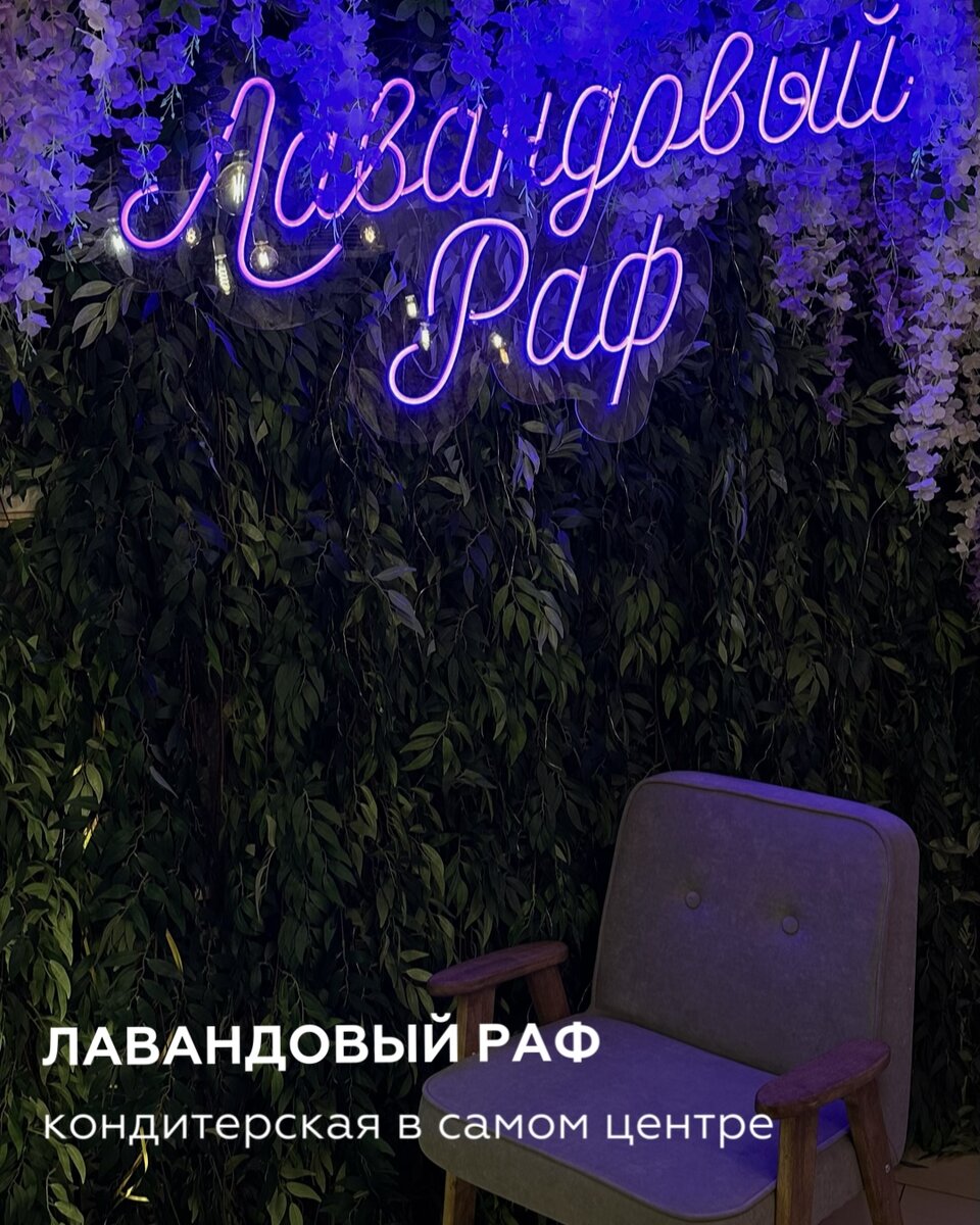 Всем сладкий привет!🤍 Ну что, настало время самого романтичного времени года, когда нет-нет да и хочется съесть небольшой кусочек тортика и пойти гулять по городу под яркими лучами солнышка. Мы не исключение и тоже любим побаловать себя сладеньким, поэтому сегодня с вами идем в кондитерскую Лавандовый Раф на Б. Садовой, 146. Небольшое помещение в бело-сиреневых тонах с коричневой мебелью, вдоль стены висит украшение из искусственных цветов в тех же оттенках (смотрится весьма интересно). Всего здесь 6 столиков, один из которых большой, и один на улице. Внутри большая витрина с очень большим выбором десертов, глаза разбегаются! Нас обслуживала очень приятная девушка, была учтива и помогала с выбором десертов под наше описание предпочтений. В меню: торты, пирожные, эклеры, трайфлы, макаронсы, профитроли, тарты, моти, сэндвичи и салаты. Бар: чай, кофе, а фишка - лавандовый раф) Не хочу тянуть, давайте перейдём к подсчету шекелей! 💵 Торт Сникерс 349 р/кусочек Хорошо пропитанные шокол