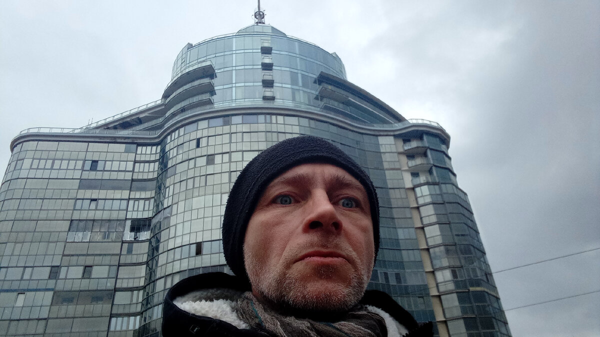 В те времена, о которых здесь идёт речь, к «синяку» ещё не примыкала никакая «стекляшка со шпилем», тогда на её месте не было ничего, только неровная земля, поросшая травой и обнесённая по периметру бетонными блоками забора. В одном месте в забор был вдавлен строительный вагончик с выходом на проспект и рекламным щитом на крыше «Продажа квартир. Строительная компания...».