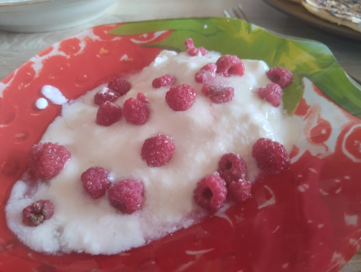 Привет, друзья! Выходные мы в деревне провели, я потихоньку расчищала нашу морозилку. Вот @denseman имеет привычку покупать литровый кефир и потом не выпивать его до конца. Я все подобные остатки храню в морозилке. Потом, если их разморозить, то из кефира получается творог э, а из оставшейся сыворотки можно напечь блинов. Вот такой творог получился у меня из остатков кефира, малина тоже из морозилки. Вот такой завтрак был у нас в понедельник с утра а деревне. Рисовая каша, творог из кефира с малиной и блины из сыворотки. Расчищаю потихоньку наши залежи из морозилки. Скоро снег сойдет, дорога просохнет и будет нам счастье. Ваша @leila