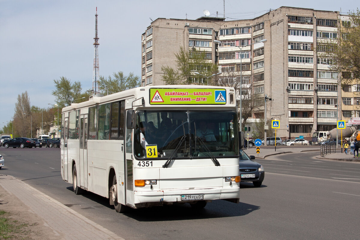 Итак, 4 мая 2015 года, после фотографирования поездов мы вернулись в Астану, чтобы посмотреть город. В кафе на проспекте Женис мы пообедали, после чего я сфотографировал несколько автобусов, а точнее - целый автобусный парад, ведь все пять пойманных машин были разными! Был там, например, Säffle System 2000NL 1999 года постройки, смахивающий на Икарус-415, причём, как выяснилось позже, зверь очень редкий: лишь 5 таких автобусов ездили по Астане в 2015 году, а в 2016-м их отправили в Павлодар. Строились эти автобусы на шасси Volvo B10M в шведском городе Шэфле.