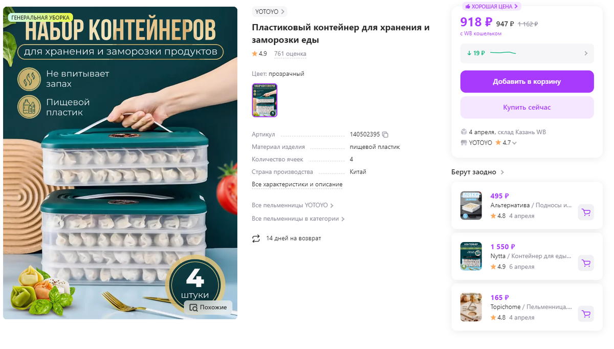 Приветствую, уважаемая читательница! Сегодня у меня для вас есть подборка интересных домашних товаров, которые могут пригодиться вам. 1. Пластиковый контейнер для хранения и заморозки еды Незаменимая вещь для хозяек. Выполнен из качественного пищевого пластика, не трескается и не деформируется при низких температурах. В комплекте есть 4 лотка для заморозки. Прозрачный цвет позволяет легко видеть содержимое. Размеры: 14 см высотой, 31,5 см длиной и 22,5 см шириной. Крышка имеет место для датировки. Герметичная конструкция предотвращает проливание и запахи. Идеально подходит для заморозки и хранения различных продуктов питания. Можно использовать как поднос для заморозки пельменей. Практичный и функциональный предмет для кухни. Артикул: 140502395 2.Креманки для мороженого на ножке Изготовлена из толстого боросиликатного стекла с металлической ножкой. Прочная и долговечная, устойчива к чистящим средствам. Идеальна для подачи напитков, мороженого, десертов и т.д. Может использоваться для п