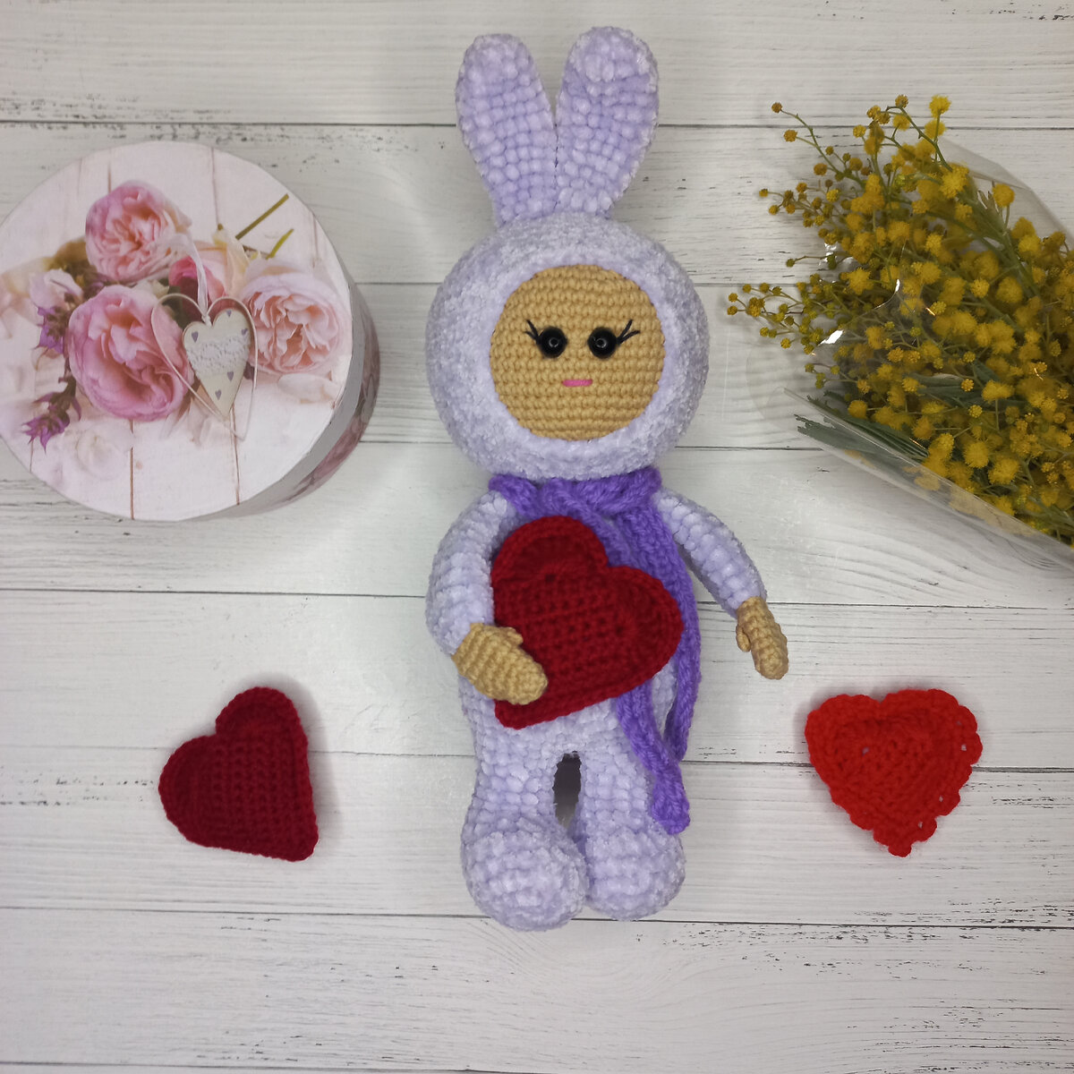 Добрый день, соскучилась по вам очень 💕💕💕💕💕 Снимать видео времени не хватает —очень долго болела, был сильный кашель. Я очень много вяжу, уже связано за этот месяц больше 120 игрушек. Сегодня просто хочу поздороваться с вами. Желаю вам хорошего дня и всего самого доброго. 💕💕💕 Хочу показать вам эту игрушку. Она связана наверное лет 7 назад Как-то никто не хотел её приобрести, но в этом месяце купили. Покупатель был очень рад и я очень рада, что этот милый зайка нашёл свой домик Изначально он был без ротика и носика (по мк) Затем я вышила ему и ротик и носик, одела шарфик и в этот раз решила пришить ему сердечко и вот его сразу купили. Теперь я точно знаю, что каждая игрушка обязательно найдёт свой домик.