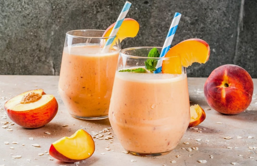 Чтобы смузи вызывал восторг при каждом глотке – желательно выбрать самые спелые и красивые абрикосы. Чем спелее – тем вкуснее. Рецептуру можно немного менять, например, добавить персики или жидкий мед. Такой смузи прекрасно утоляет жажду и дарит приятные эмоции. Все, что требуется – это нарезать персики, абрикосы, и сложить в блендер. Добавив миндальное молоко, массу нужно взбивать до однородности.