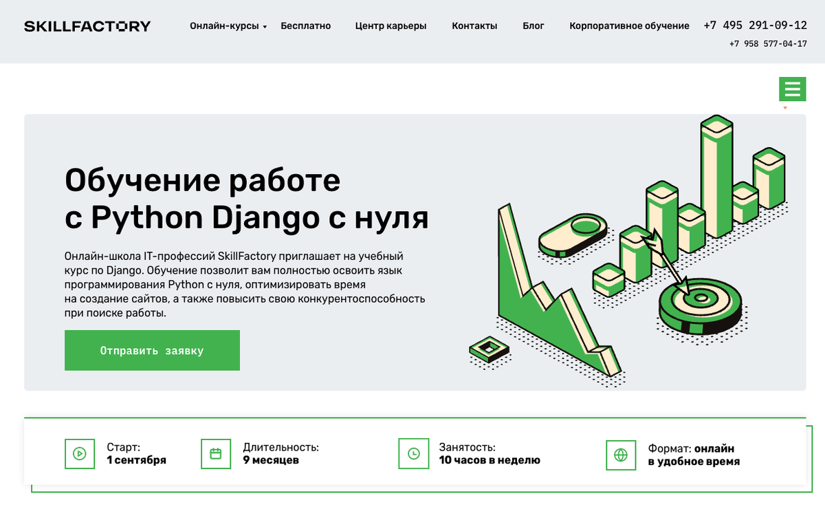 1. Обучение работе Python Django с нуля от Skillfactory (сайт школы)