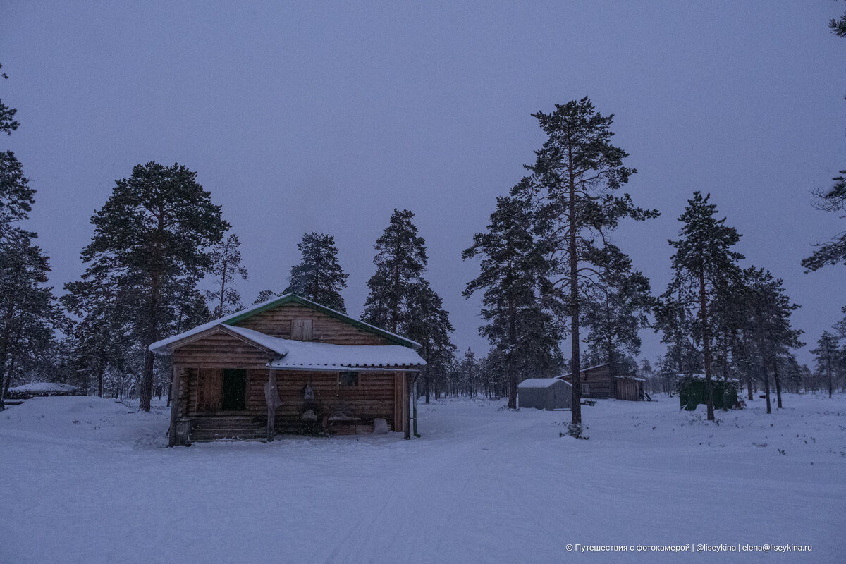 Здесь нет телевизора, они почти не смотрят новости, не ходят в супермаркеты и не заказывают еду на дом. Нет электричества, канализации и водопровода. Вообще почти ничего нет, кроме тайги и тех, кто в ней живет. Нет ничего, что мы привыкли ассоциировать с комфортом. Тем не менее, люди, которые живут в этой глуши, вполне счастливы, смогли обустроить свой быт и неплохо живут среди тайги в окружении рек, озёр, болот и диких зверей. Чтобы добраться до стойбища, мне пришлось проехать около 200 км от Сургута на автомобиле, а потом ещё минут 40 на снегоходах. По-другому сюда не попасть. На небольшой поляне в лесу стоит несколько построек — жилых изб. В одной живёт пожилая мать хозяина, ну а в другой избушке — он сам с женой. Плюс, есть ещё несколько вспомогательных построек и лабазов для хранения продуктов. Жилая изба — это по сути деревянный сруб-пятистенок с низким потолком и несколькими окнами. Но обязательно с небольшим предбанником. Он выполняет роль дополнительной защиты от холода, ну