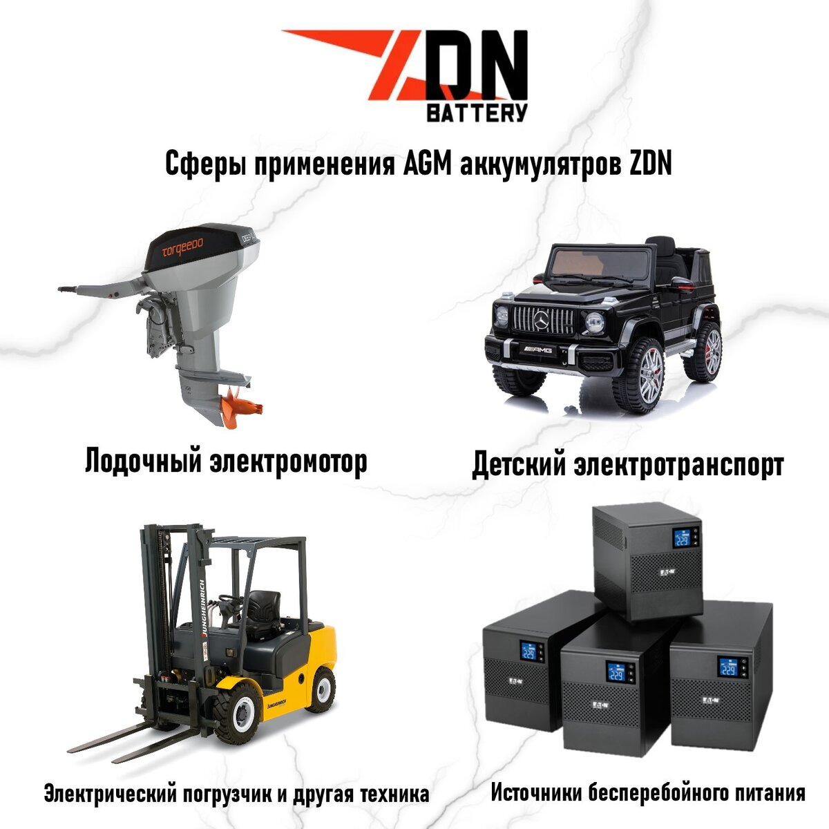 - малый электротранспорт (электровелосипеды, электросамокаты, некоторые модели детских электрических автомобилей, электроквадроциклы),