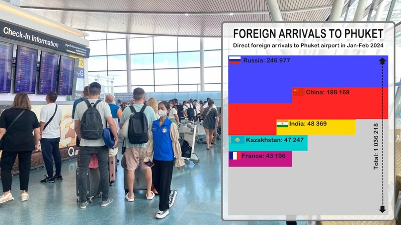 Российские туристы составили четверть общего потока туристов на остров Пхукет в январе-феврале 2024 года. На конец марта граждане России продолжают оставаться в лидерах по количеству туристических поездок на остров, а во время пика высокого сезона четверть всех прямых прибытий на остров приходилась именно на россиян. Общий объем прямых прибытий приблизился к уровню до пандемии.