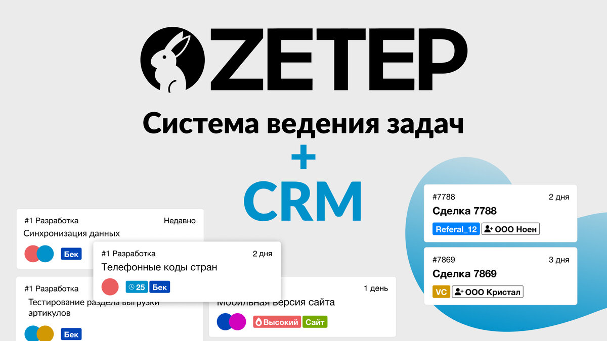 Это мощный инструмент для оптимизации и повышения эффективности работы отдела продаж. Благодаря своей простоте, но при этом невероятной гибкости и множеству настроек, наша CRM-система уже завоевывает любовь пользователей. Независимо от того, будете вы ее использовать отдельно или в комплексе с системой ведения задач Zetep — данный функционал поможет вам автоматизировать множество процессов. А значит, у сотрудников высвободится время и энергия, которое они могут посвятить более важным задачам, помогающим развитию бизнеса.