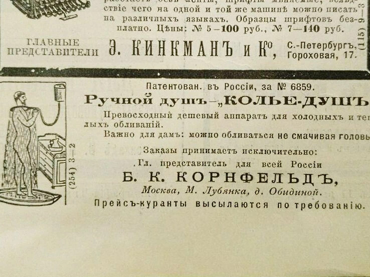 Реклама бывает хорошая, плохая и та, которую трудно забыть. Ретро (винтажная) реклама тем и хороша, что сегодня воспринимается, как некий отпечаток истории. Не переключайтесь на рекламу! А кому духи хранцузские, мази гишпанские, колбаски остзейские? Вот, принёс вам всякой дореволюционной российской рекламы... Собрал для вас интересные предложения. Пишите, если что заинтересовало, отправлю бандеролью, но сначала деньги. *** 1) Странно, что данное ручное колье-душ пропало из продаж. Производитель рекомендует: "Важно для дам: можно обливаться не смачивая головы." 2) Не спешите покупать вашему отпрыску, на погибель окружающим, bluetooth колонку или модные гаджеты. "Дети! Просите для подарков к празднику фонограф Пате, который папа может вам купить в магазине "Ново-фонограф Пате". Он поет и играет все танцы! Нет ничего занимательнее! 1904 год 3) "Лучше, чем белила...". "Опасный враг женщины - запор, который разрушает не только здоровье, но и красоту..." Реклама средства от запоров "Скавули