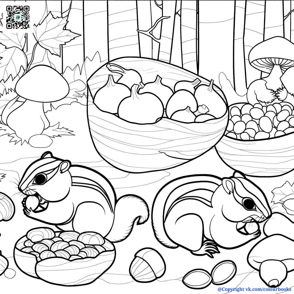 🐿️ Волшебный мир бурундуков: Раскраски для юных художников 🎨🍂