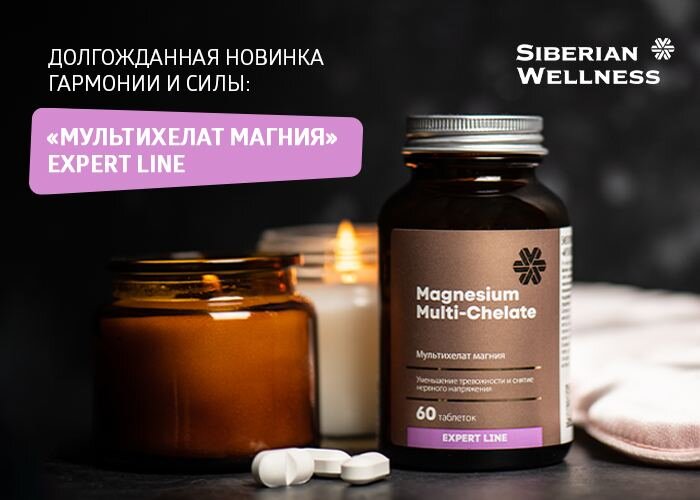 В составе сразу три хелатные биодоступные формы магния 2 таблетки содержат 300 мг магния из магния цитрата, магния таурината, магния бисглицината Как помогают три хелатные биодоступные формы магния: ⭐Бисглицинат магния – хелатное соединение магния и глицина помогает: – быстро снизить уровень стресса; – уменьшить выраженность подавленных состояний; – повысить умственную работоспособность; – наладить сон. ⭐Тауринат (таурат) магния – соединение магния с аминокислотой таурином способствует: – повышению защитных функций и укреплению сердечно-сосудистой системы; оптимальной работе мышц и снижению мышечной усталости; – стабилизации уровня сахара в крови; – нормализации артериального давления. ⭐Цитрат магния – органическая соль лимонной кислоты эффективна: – при проблемах с ЖКТ; – фибромиалгии, мышечных болях. Очень важно, что при приеме элементов в биодоступной форме практически отсутствуют побочные реакции. Применение Взрослым принимать по 2 таблетки в день во время еды. Продолжительно